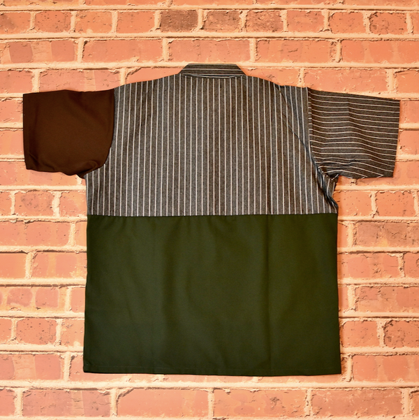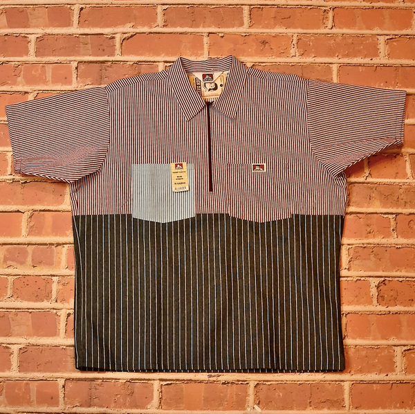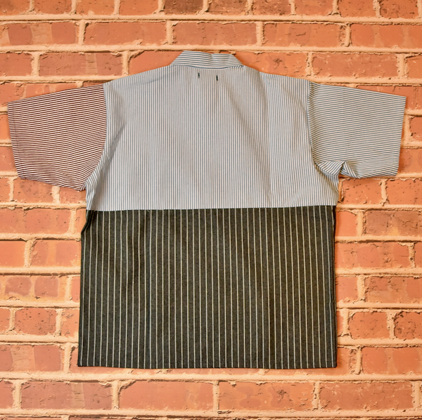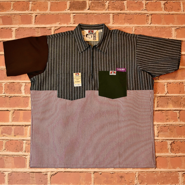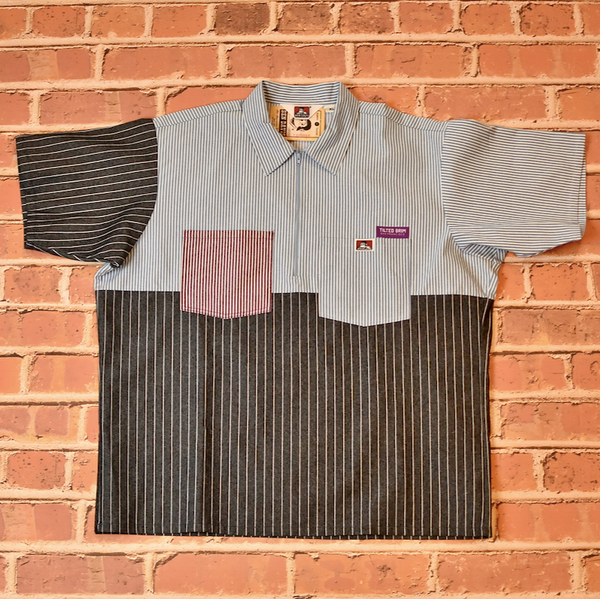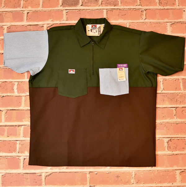 Triple Label collaboration from Ben Davis, Tilted Brim, and Holy Stitch. Time-tested SF workwear silhouettes re-imagined in a color blocked construction.