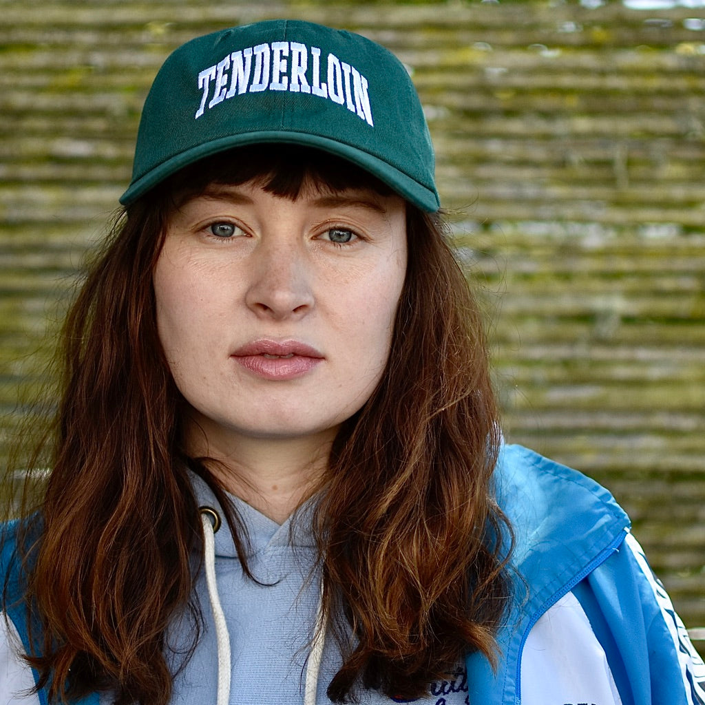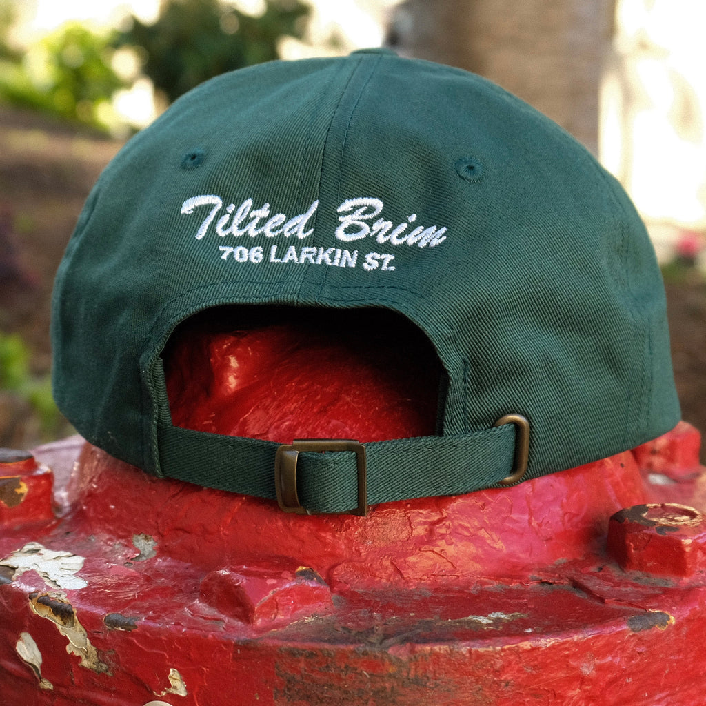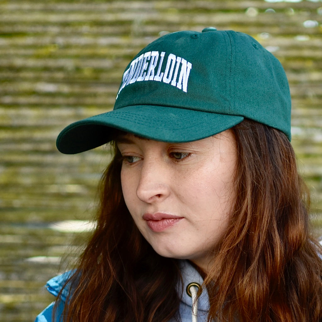 Cotton blend, 6-panel in a classic "dad hat" shape: unstructured crown and pre-curved brim. Embroidered logos at front and back, self-fabric adjustable closure at back.